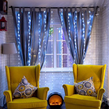 ДОЖДЬ (занавес) 3х2 м, прозрачный ПВХ, эффект водопада, 240 LED, теплый белый