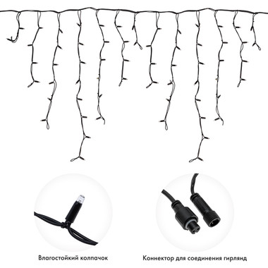 Гирлянда светодиодная Бахрома (Айсикл), 5,6×0,9м, 240 LED БЕЛЫЙ, черный КАУЧУК 3,3мм, IP67, эффект мерцания, 230В NEON-NIGHT (нужен шнур питания 315-000)