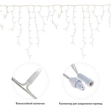 Гирлянда светодиодная Бахрома (Айсикл), 5,6×0,9м, 240 LED БЕЛЫЙ, белый КАУЧУК 3,3мм, IP67, постоянное свечение, 230В NEON-NIGHT (нужен шнур питания 315-001)